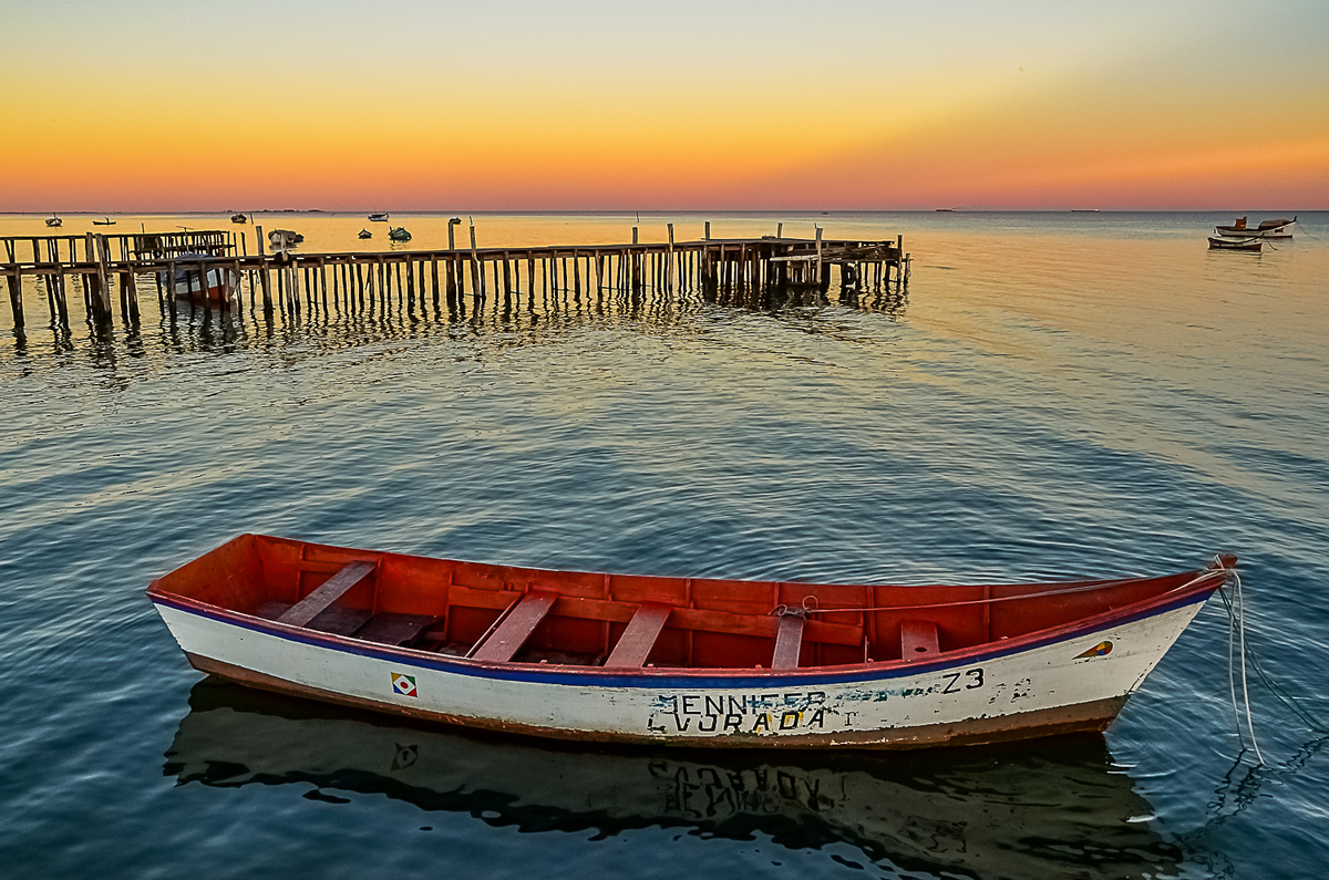 A arquitetura dos casarões e a orla da lagoa dos Patos.